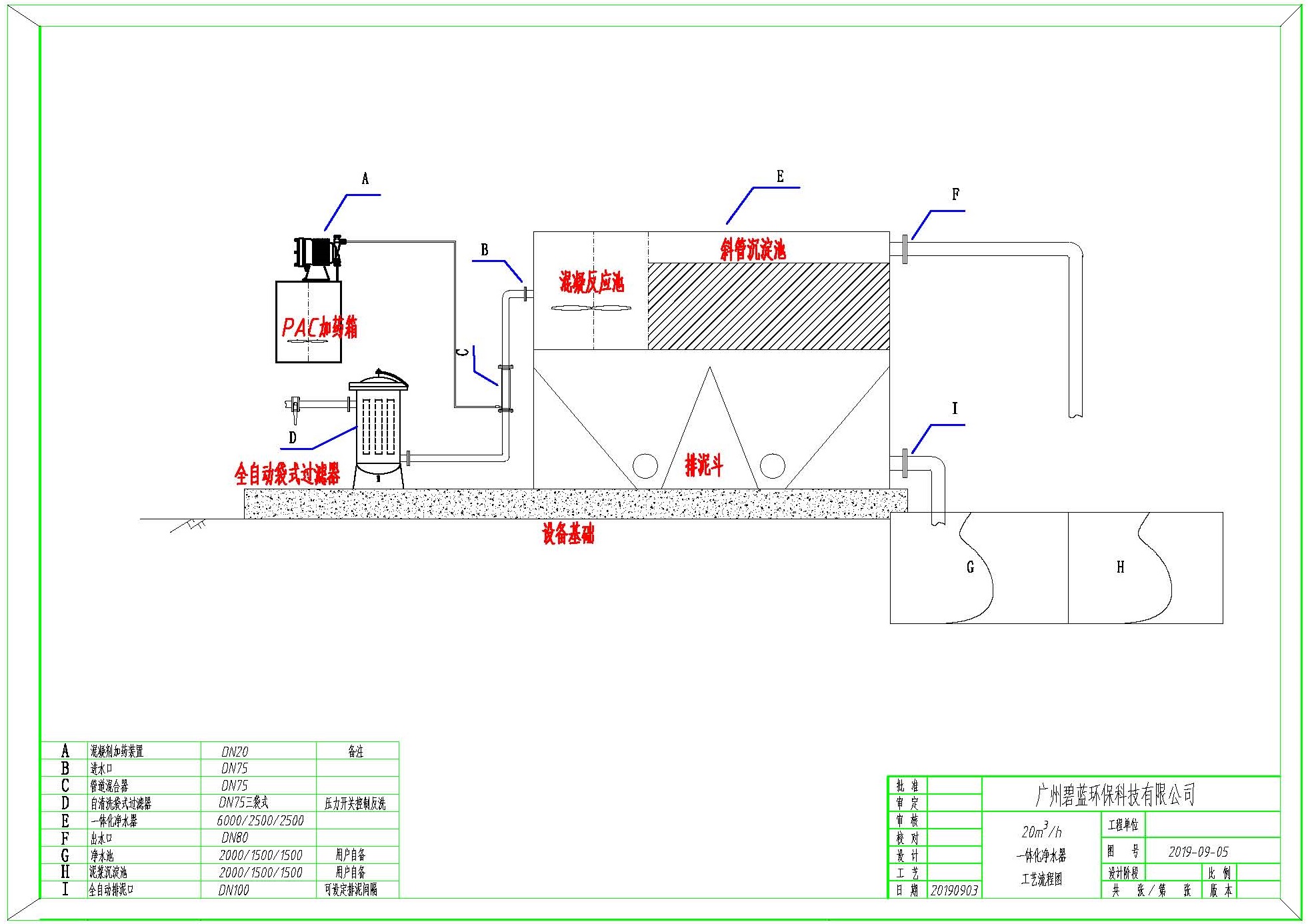 设计工艺:收集池+混凝加药+斜管沉淀+砂滤+设备间+排泥沉淀池