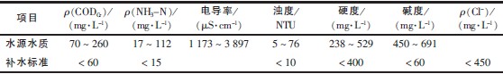 采用某市政污水厂二级排放水为电厂唯一生产水源,根据GB 50050—2007《工业循环冷却水处理设计规范》确定该循环冷却塔的补水控制标准,水源水质和补水标准如表1 所示。