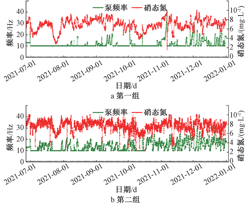 推广应用中应注重仪表的选型及维护,进水仪表、过程仪表、出水仪表分别对应前馈、反馈、及补偿的控制,若仪表出现故障,则对应策略跳出;各仪表设置区间限值,超出时按限值投入,并报警提示人工进一步判断;如NO-3仪表偏差超过2mg/L则直接影响总体处理效果,因此需对此仪表进行每月/次的清洗校准。同时注重加药泵、流量计选型,计量泵选择变频电机,能在10~50 Hz呈现线性变化,每月/次测试泵流量性能;如果流量计数据不准确,直接反馈控制频率。
