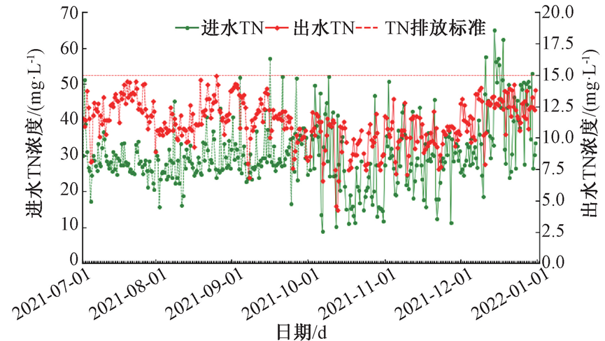 随着排放标准提高及外碳源投加成本较高等影响,污水处理厂的TN指标成为运行的一大难题,智能控制系统开发及投入可以有效解决出水TN稳定达标排放等问题。通过在3万m³/d处理规模的污水厂进行工程示范,稳定运行6个月结果表明,出水TN可稳定在13 mg/L左右排放,投加成本较投入前降低10%以上;通过构建TN的预测模型曲线可以提前得到7 h后的TN值,可为运营及水质预警提供有效支撑。控制系统中设备仪表选型、关键过程仪表维护使系统的稳定运行得到保障,为进一步推广积累经验。