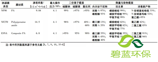02 商品NF膜在不同应用场景下的水处理性能及可能的不足